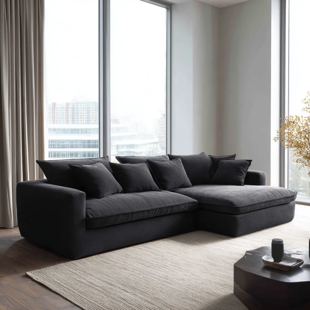 Realizzato in tessuto di alta qualità Nero, il divano è progettato per resistere all'usura quotidiana fornendo un aspetto raffinato e sobrio.