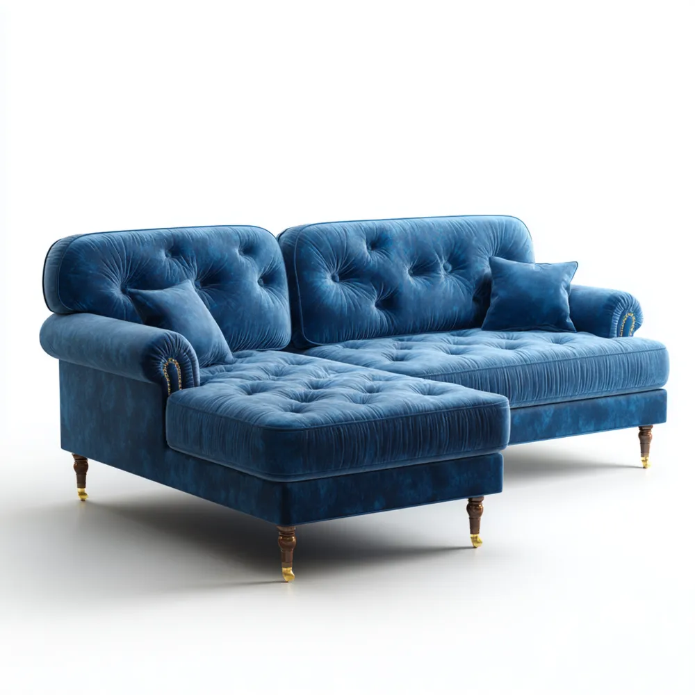 Materiale e lavorazioneRealizzato in velluto di alta qualità, questo divano si presenta in un affascinante colore Blu. La struttura è robusta e durevole, progettata per resistere all'uso quotidiano.