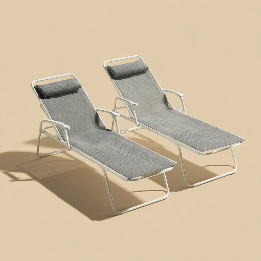 Questo set di sdraio prendisole è perfetto per godersi il sole in giardino o in terrazza. Con un design moderno e elegante, si adatta perfettamente a qualsiasi ambiente esterno.